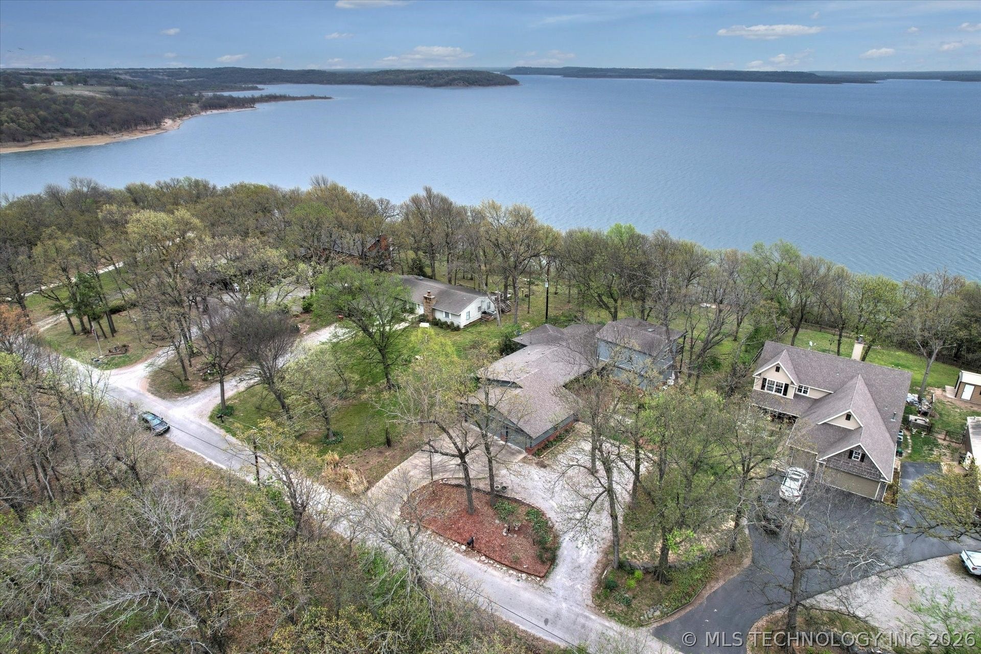 Looking for a lakefront home and easy commute to Tulsa? Check out this 4 bedroom, plus office, 3 full bath, 3-car garage home with 2 living areas set on 3/4 acre m/l with corps frontage on Oologah Lake. Main home was built in 1964 and completely remodeled down to the studs in 2008-2009. Builder added addition in 2012, including 2nd living with hardwood floors, corner gas log fireplace, and upstairs 4th bedroom, a 2nd primary suite. Kitchen w/SS appliances and granite counter-top open to combo dining/family room. One primary suite with tile shower, double sinks & 2 WICs downstairs. En-suite full (shower) bath & exit to private covered upstairs deck in the 2nd primary bedroom. Stunning, panoramic views of the lake from the expansive windows in downstairs living and kitchen, screened-in patio, 2nd floor bedroom, and upstairs deck. Ideal for multi-generational living. No HOA, store your boat/RV at home! Extensive landscaping adds beauty throughout the seasons. Great neighbors, quiet dead-end street. Did I mention the lake view?