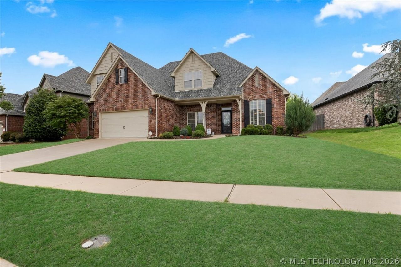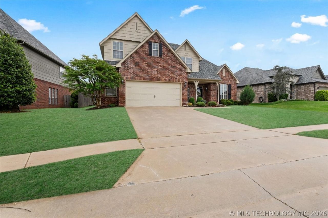 Welcome to this two-story home in The Estates of Birchwood! Just off the entry, the main living area features a gas starter fireplace and connects easily to the kitchen and dining space. The kitchen is updated with granite countertops, has wood cabinetry, and newer stainless steel appliances. Major items have been updated over time, including a roof replaced in 2020, two HVAC units installed in 2025, and a hot water heater replaced in 2023. Additional features include built-in speakers in the living area and exterior, a sprinkler system, storm doors at both the front and back, and a storm shelter located in the garage. The backyard offers usable outdoor space, and the home is located with convenient access to Broken Arrow amenities, shopping, and dining. Zoned for Wolf Creek Elementary and Broken Arrow High School. Schedule your showing today!